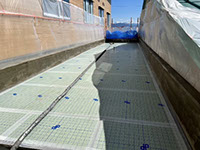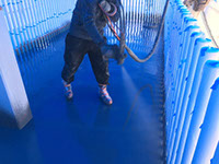硬化が速いので、マンションやアパートの通路・階段室・バルコニーなどでの