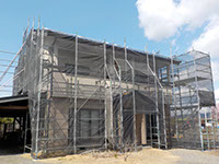 近隣様への挨拶を済まさせていただき、作業に必要な足場を組み立てます。