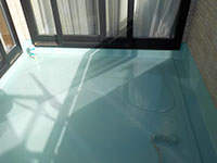 サッシ(窓)などが塗装作業で汚れないように、ビニ-ルなどで養生します。