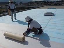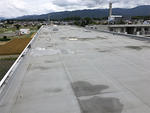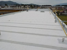 新しい断熱材を敷き込んでウレタン塗膜防水(機械的固定工法)にて施工させていただきました。