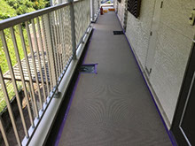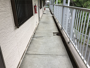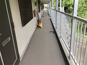 既存の通路はコンクリ-トの状態だった為、下の階(廊下)に雨漏りが発生していました。