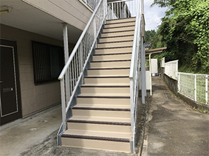 伊那市内のアパ-トにて通路と階段のリフォ-ム工事させていただきました。